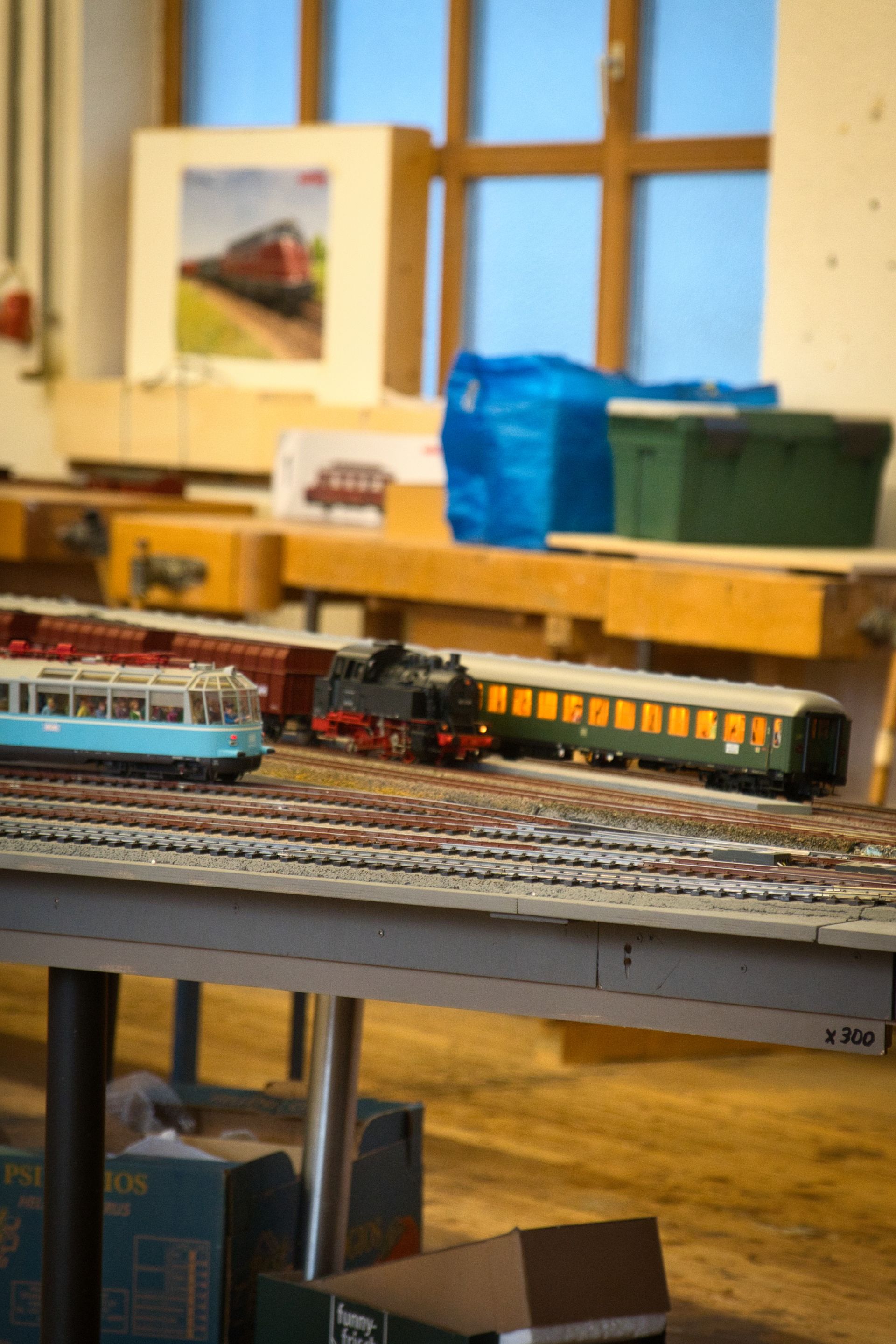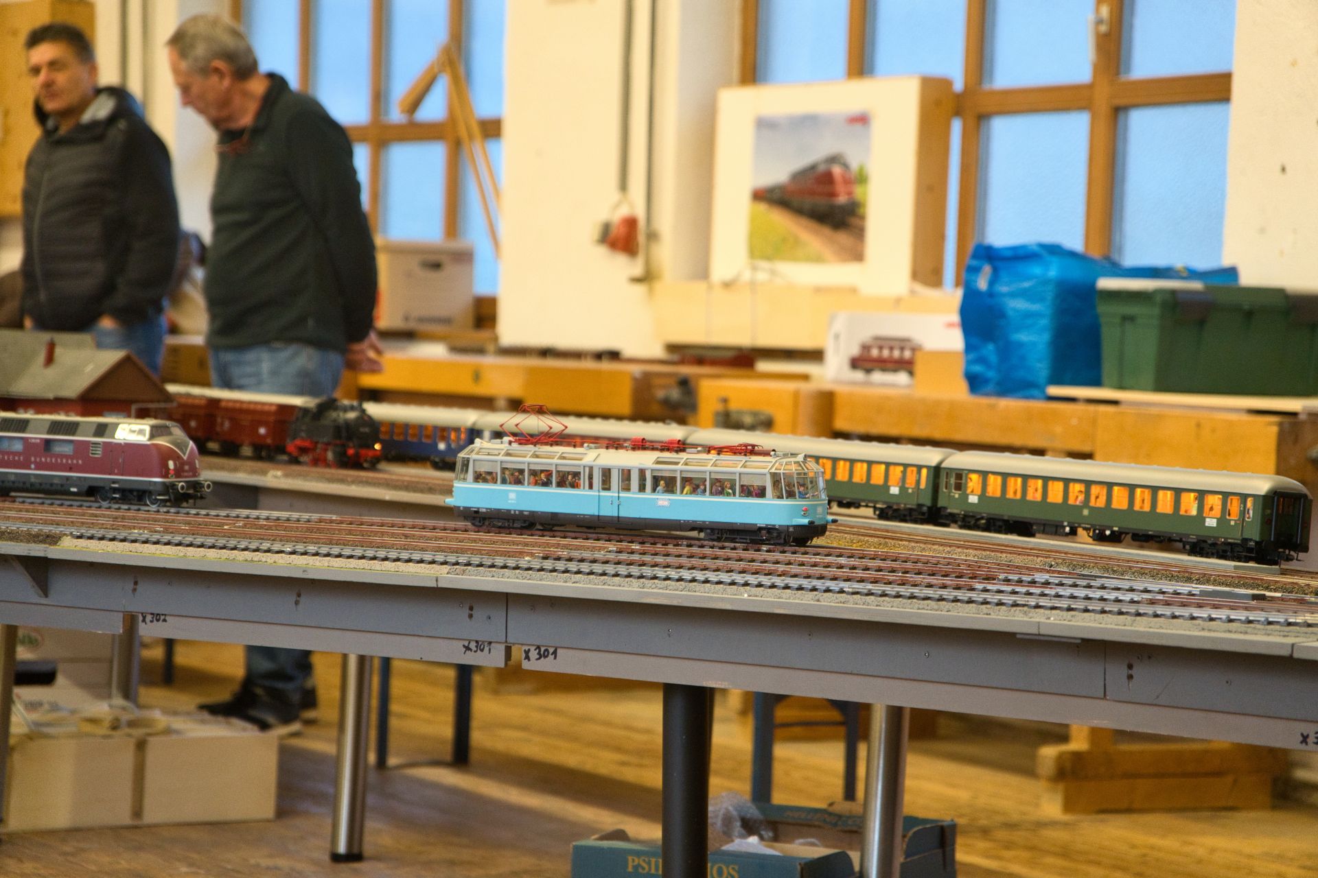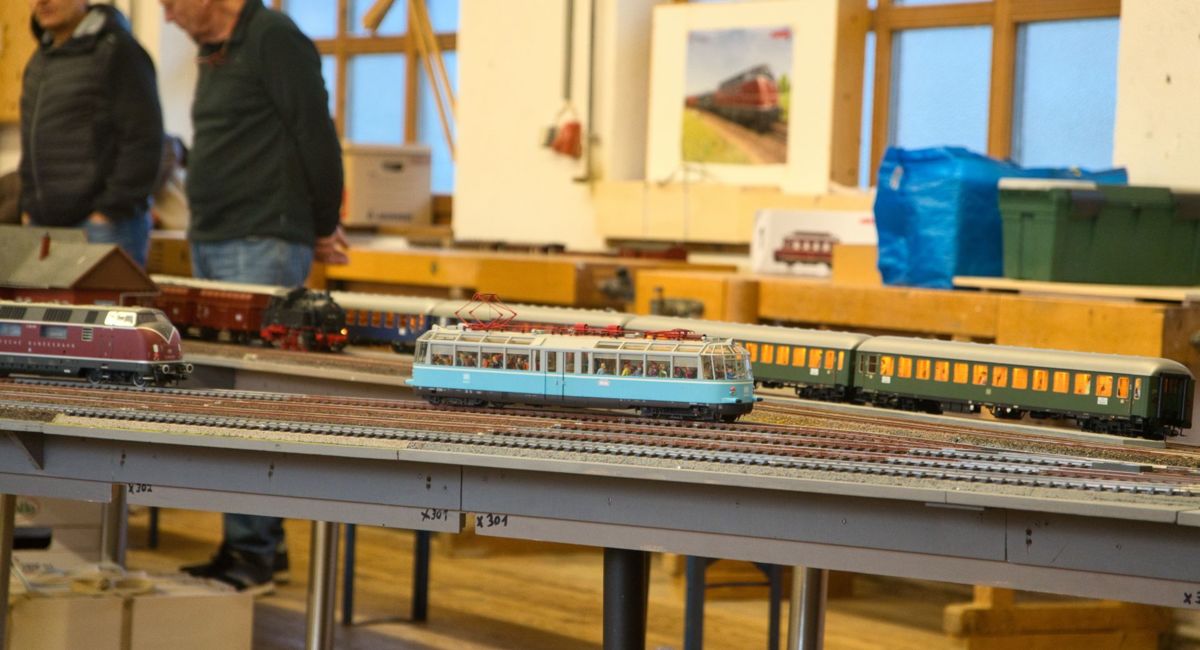 Wolfgang Gillich präsentierte neben einer Fülle von Fahrzeugen in H0 nach amerikanischen Vorbildern einen Galaxy-Star-Express von Lego. Fritz Schröder hatte eine alte Uhrwerkbahn und Otto Osiander eine weitere alte Märklin-Anlage aufgebaut. Rudi Stocker stellte eine Sommer-Winter-Anlage in H0 aus. Ebenso eine Z-Schatullenbahn, die seiner Ehefrau gehört. Auch die Spur N war diesmal durch Wolfgang und Ludwig Herrmann mit einer kleinen, aber feinen Anlage vertreten, dazu Häusermodelle mit Beleuchtungseffekten.