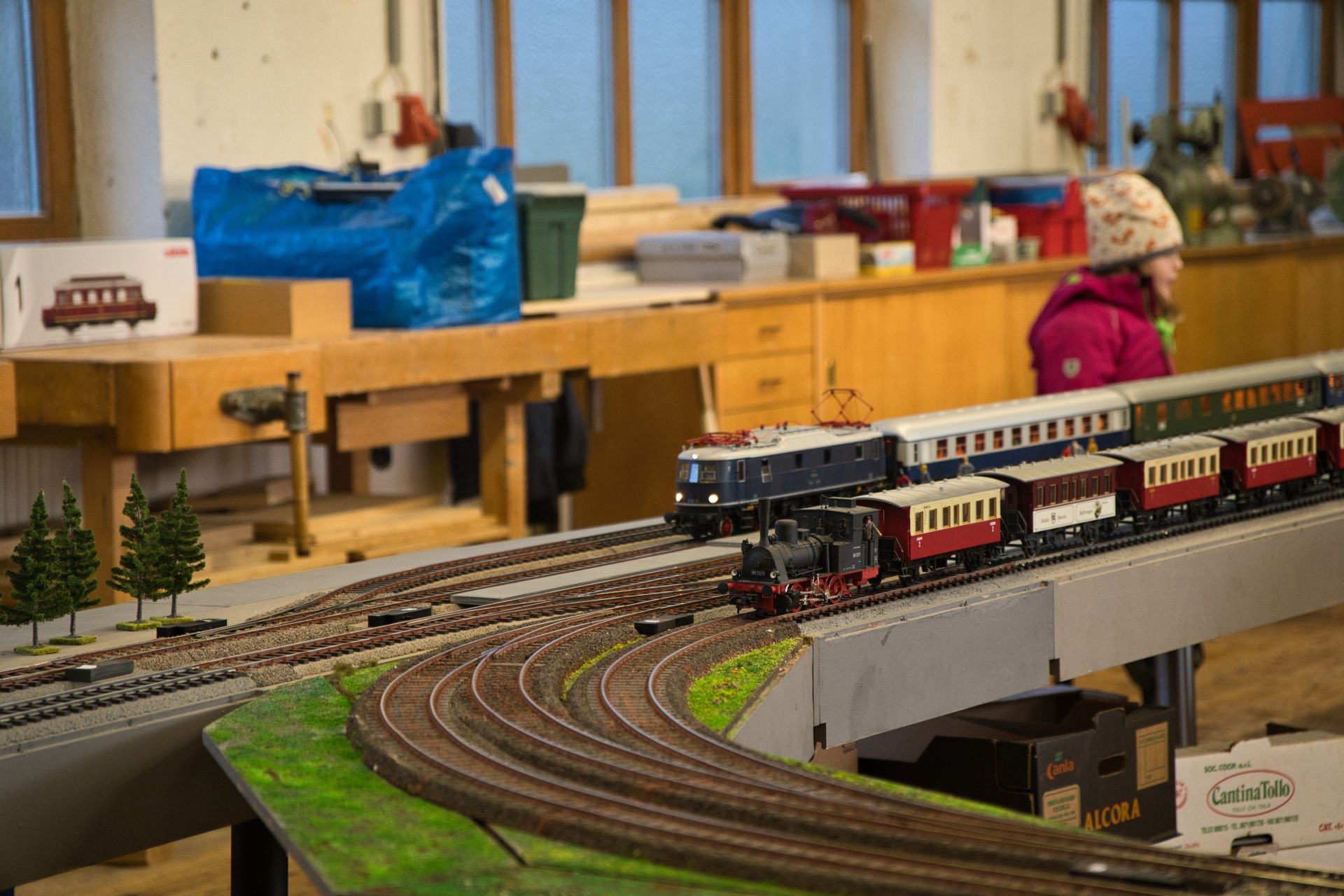 Zwei Schüler der Michael-Ende-Schule präsentierten ihre inzwischen beachtlich große Märklin-Bahn in H0, eine Verbindung von altem und neuem Material.
