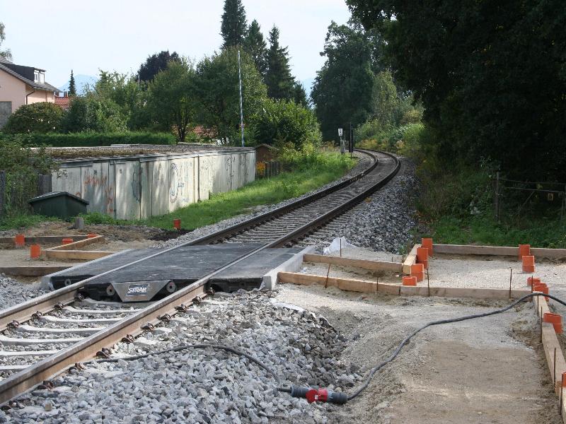 Fotos vom Bau des Haltepunktes Rosenheim-Hochschule. Mit diesen Bildern möchte der Eisenbahnclub Rosenheim den Werdegang des neuen Haltepunktes an der Strecke nach Mühldorf dokumentieren. Es sind abgelichtet der Zustand vor dem Umbau, eine Gegenüberstellung vom alten Übergang zum neuen im Bauzustand, wo ersichtlich ist, dass der Überweg über das Gleis ein kleines Stück Richtung Süden (also in die Kurve hinein!) verlegt wurde. Außerdem Fotos vom Rohbau der Umlaufsperre sowie ein erstes Bild vom schon fertiggestellten Bahnsteig und der Rampe dorthin. Aktualisierungen folgen. In Betrieb geht der Haltepunkt am Sonntag, 9. Dezember 2012.